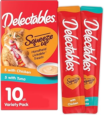 Hartz Delectables Squeeze Up Interactive Lickable Wet Cat Treats for Adult & Senior Cats, Chicken & Tuna, 10 Count,5 oz