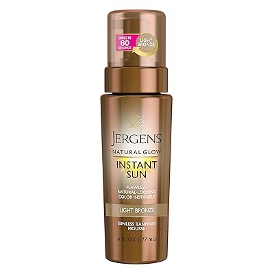 Jergens Natural Glow Instant Sun Sunless Tanning Mousse for Body, Light Bronze, 6 Ounces