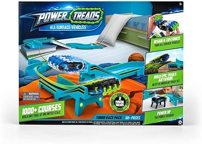 Power Treads All Surface Vehicles Turbo Race Pack - 60 Pieces - 2 Bonus Power Treads - 1000 Courses - Design and Customize - with Glow in The Dark Stickers