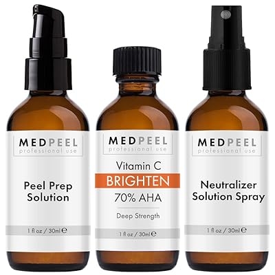 Medpeel 70% AHA & Vitamin C Brightening Essential Chemical Peel at Home Kit, Includes Peel, Prep, Neutralizer, Deep Strength Professional Grade Chemical Face Peel, Reduces Age Spots, 1oz30ml