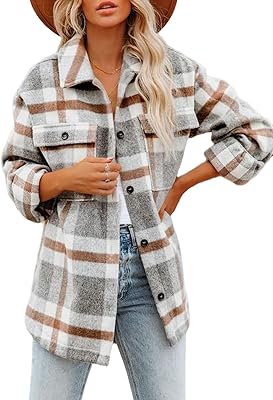Beaully Womens Flannel Plaid Shacket Fall Winter Outfits Long Sleeve Button Down Shirts Jacket Coats with Side Pockets