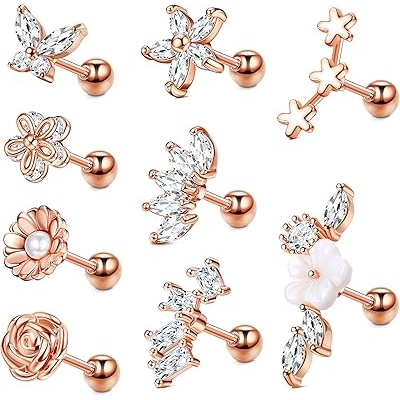Drperfect Cartilage Stud Earrings for Women 16G Stainless Steel SilverRose Gold Plated Conch Helix Tragus Piercing Jewelry