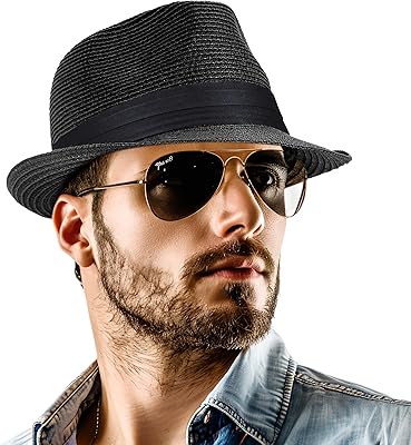 Straw Fedora Hat for Women Men Packable Short Brim Roll Up Trilby Hat Panama Summer Beach Sun Hat UPF 50