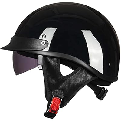 ILM Half Helmet Motorcycle Open Face Sun Visor Quick Release Buckle DOT Approved Cycling Motocross Suits Men Women Model-205V S, Gloss Black