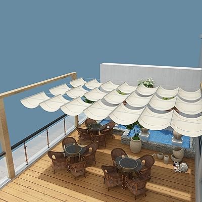 Coarbor Upgraded Retractable Replacement Pergola Canopy Shade Cover 3Wx10L Beige Slide Wire Canopy Wave Shade Extendable Shade Cover Shade Sail for Patio Deck Porch Gazebo
