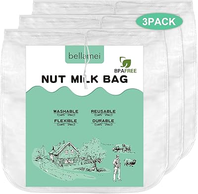 3 pack 14x14 Nut Milk Bag Extra Large Reusable Food Strainers Nut Bags For Straining AlmondSoy Milk Greek Yogurt Professional for Cold Brew Coffee Tea Beer Celery Juice Fine Nylon Mesh