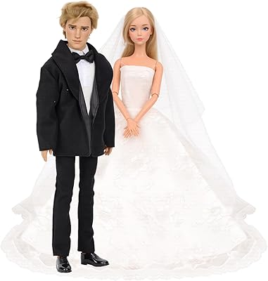 BARWA Wedding Set White Wedding Dress with Veil and Formal Suit Outfit for Boy & Girl Dolls