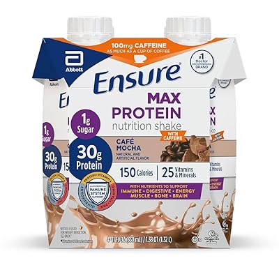 Ensure Max Protein Shake | Cafe Mocha | Ready to Drink | 30g Protein for Muscle Health | 1g Sugar, 4g Fiber | 11 fl oz, 4 Pack