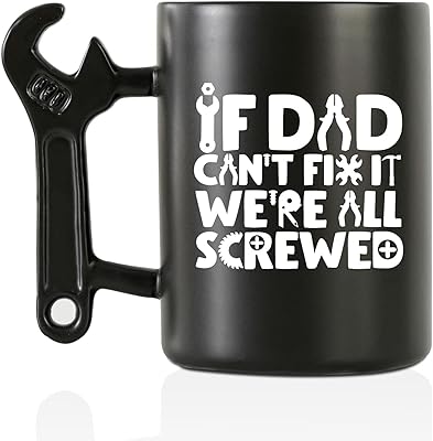 Onebttl Coffee Mug With Wrench Spanner Handle - Dad Gifts From Daughter and Son, 13.5oz Funny Ceramic Mug for Fathers Birthday, Fathers Day, Christmas - Dad Can Fix