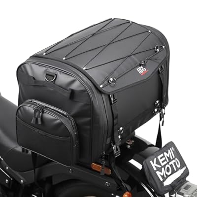 KEMIMOTO Motorcycle Travel Luggage Bags, 60L Expandable Large Capacity Motorcycle Tail Bag, Waterproof Rear Rack Trunk, Motor Pannier Bag with Rain Cover and Straps