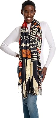 Soft Cashmere Feel Scarf for Women,African Tribal Style Double Sided Prints Warm Tassel Shawl Scarf Winter Large Wrap