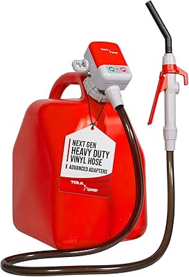 TERA PUMP - Flow Control Fuel Transfer Pump 2nd Gen. - Powerful Transfer at 2.5 GPM, Newly Upgraded with Universal Built-In Adapter, Durable Vinyl Hose for Gasoline, Diesel, E85, E15 & More