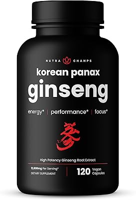 NutraChamps Korean Red Panax Ginseng Capsules | Extra Strength Ginsenosides for Energy, Focus, Performance, Vitality & Immune Support | Korean Ginseng Root Extract 120, Red