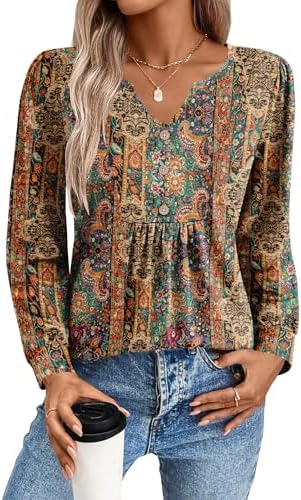 Zeagoo Long Sleeve Shirts for Women 2025 Casual Pleated V Neck Fall Tunic Tops Button Down Blouse Dressy Loose T-Shirts