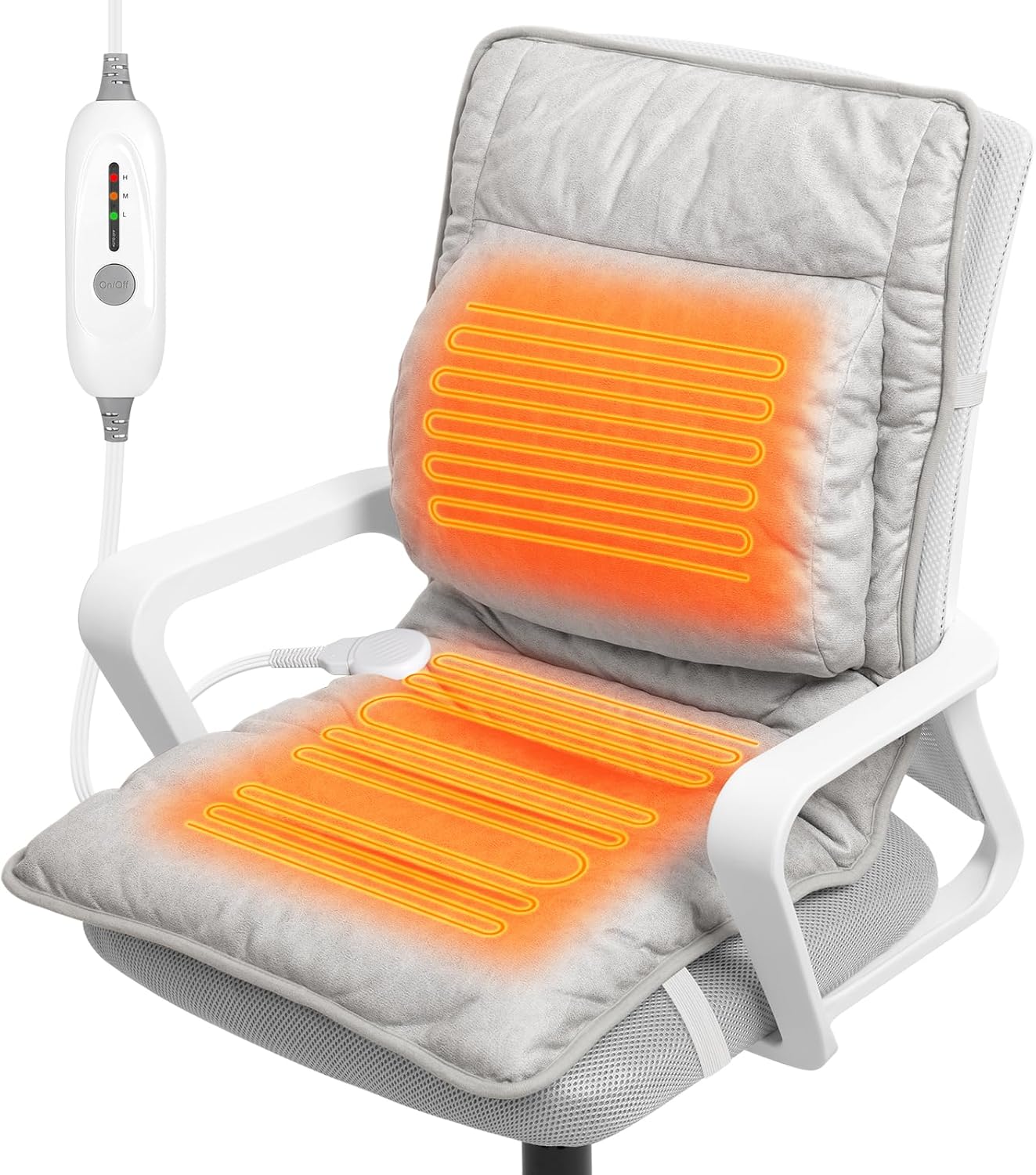 Heated Seat Cushion for Office Chair with Lumbar Support, Extra Large Heated Chair Pad for Pain Relief, Auto Shut Off, 3 Heating Levels, Chair Warmer for Full Back, Waist, Hip, Thigh, Home Use, Grey