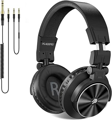 PUPGSIS Over Ear Headphones Wired: Studio Monitor Headphones - Professional 40kHz Hi-Res DJ Stereo Headphones - 14 to 3.5mm Audio Jack for RecordingMixingPodcastGuitarPiano