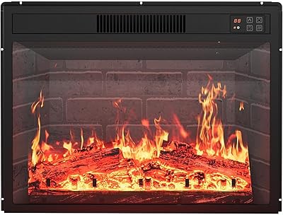 23 Ultra-Thin Electric Fireplace Insert Rear Projection Flame Fireplace Heater 1500W 3 Color Flames & Brightness Levels with Remote Control & Timer 60-84F, Heats 400 Sq Ft